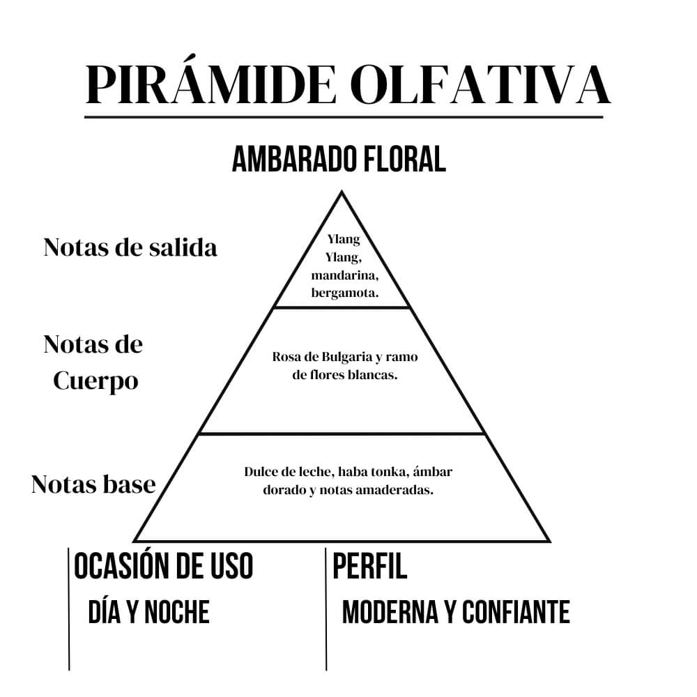- Base : Dulce de leche, haba tonka, ámbar dorado y notas amaderadas.