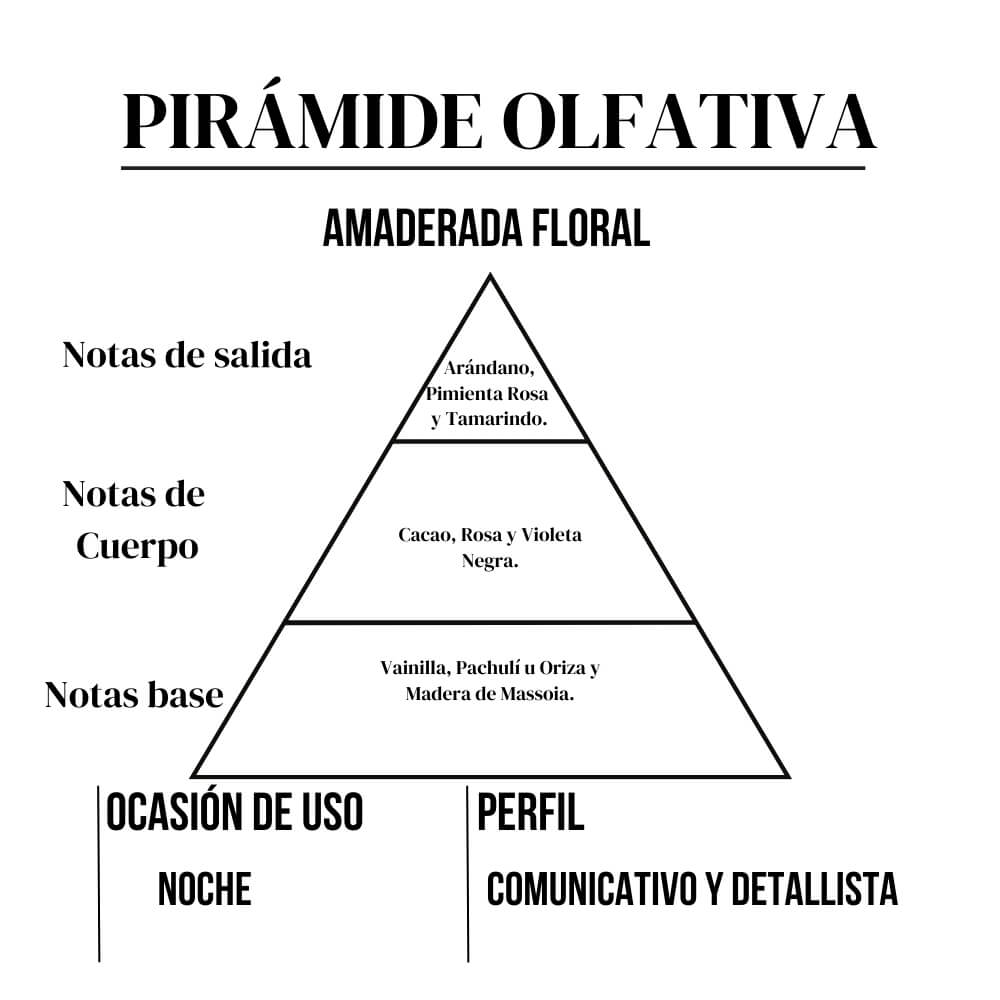 • Cuerpo: Cacao, Rosa y Violeta Negra.